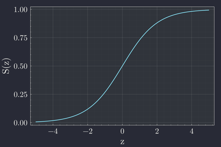 S(z) = 1 ./ ( 1 .+ exp.(-z))