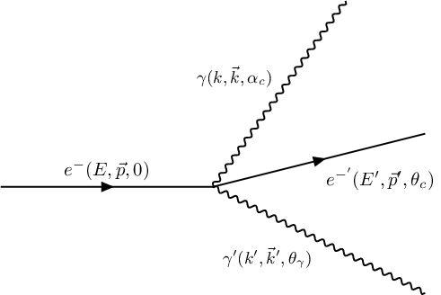 - Scattered photons $\gamma\prime$ with energy $k\prime$, scattering angle $\theta_\gamma$ with respect to $\vec z$ and momentum $\vec k\prime = (k\prime \sin \theta_\gamma, k\prime \sin\theta_\gamma\cos\phi, k\prime\cos\theta_\gamma)$.